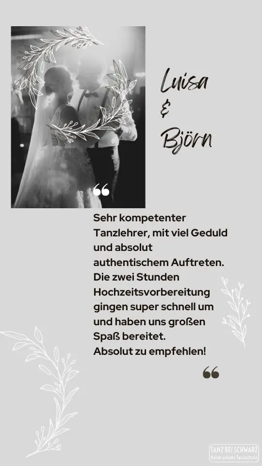 Möchtet ihr einen Hochzeitstanz entsprechend euren Wünschen und Fähigkeiten, in einer privaten Runde, nach einer individuellen Terminvereinbarung, erlernen?